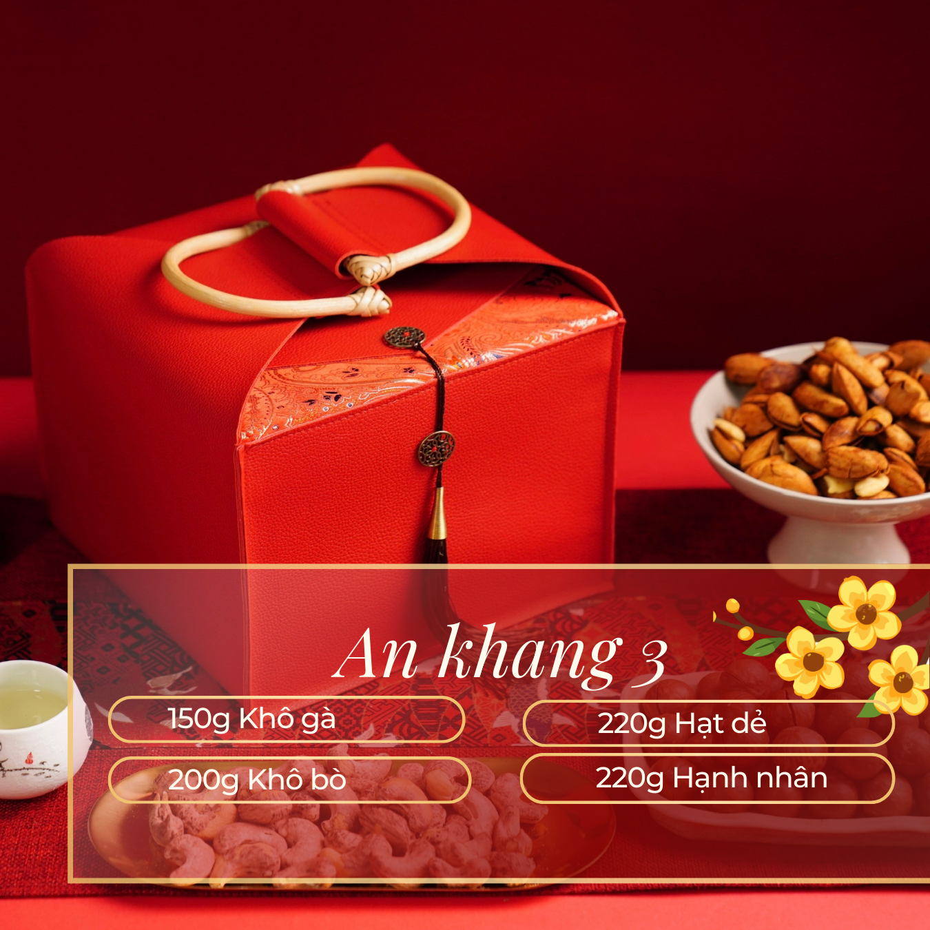 AN KHANG 3: 200gram khô bò, 150gram khô gà, 220gram hạnh nhân, 220gram hạt dẻ